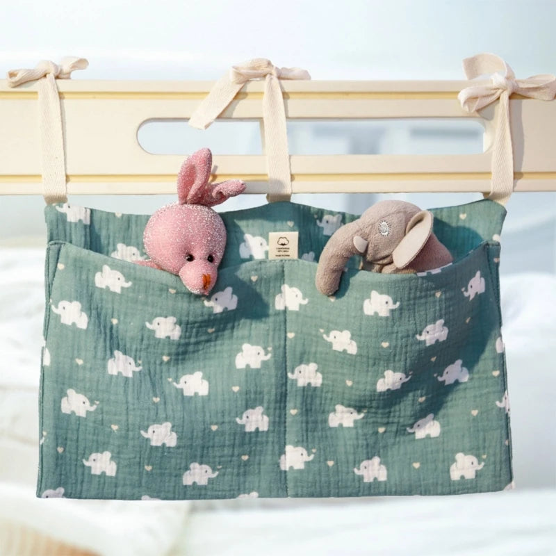The Cotton crib hanging storage bag is suitable for diapers, pacifiers, teethers, baby wipes, diapers or small toys, etc. You can also put toys, books or whatever you want there.